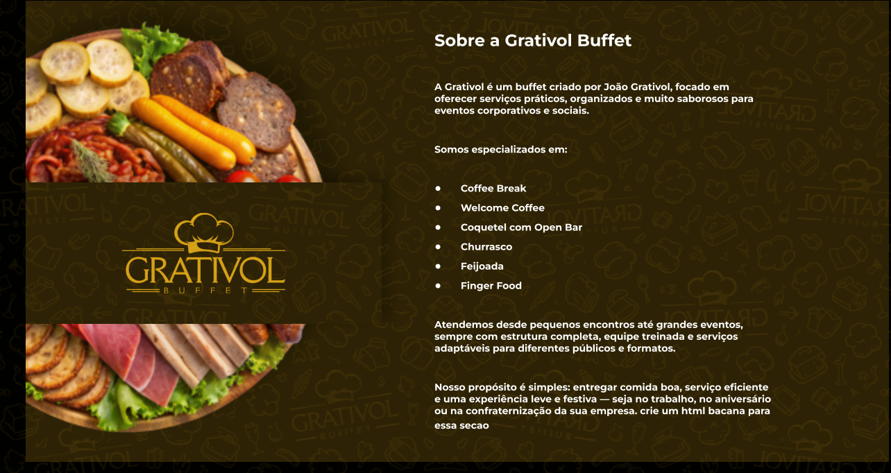 Cortes preparados na hora, equipe dedicada e montagem completa. Opcional: roda de samba.